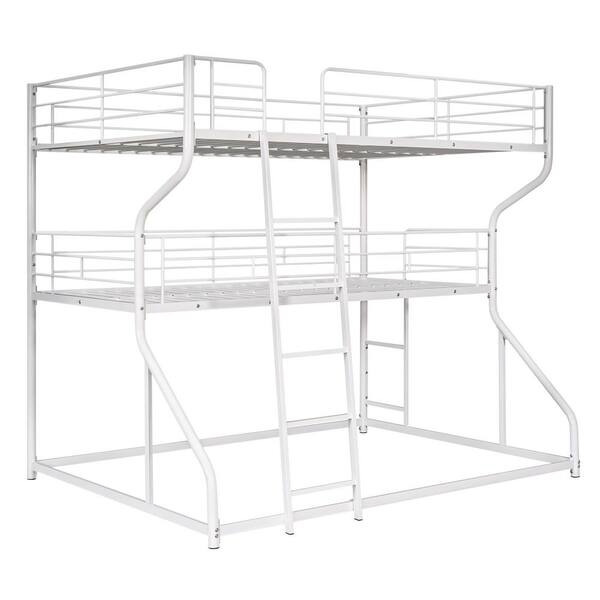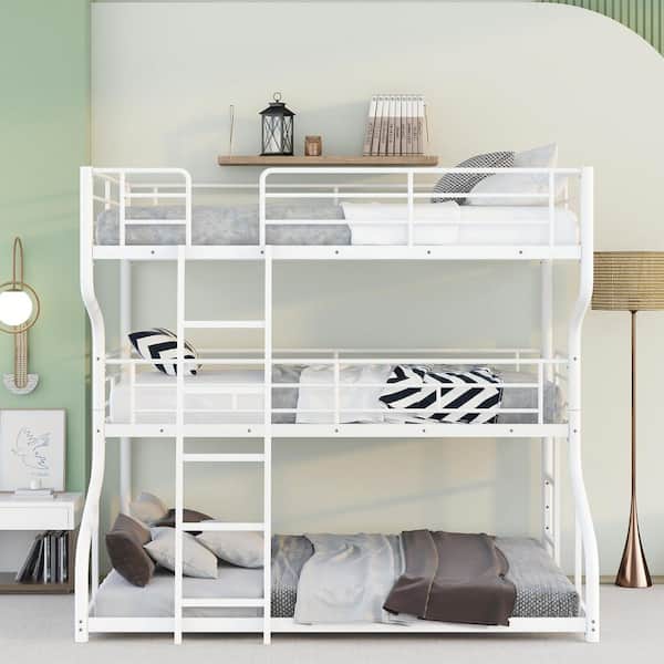White Full XL over Twin XL over Queen Triple Bunk Bed with Ladders