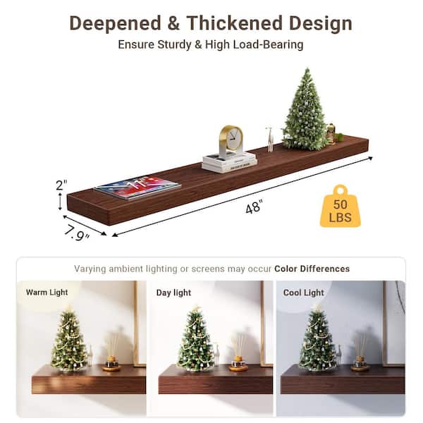 48 in. W x 2 in. H x 8 in. D MDF Rectangular Wall Shelf in Dark Walnut