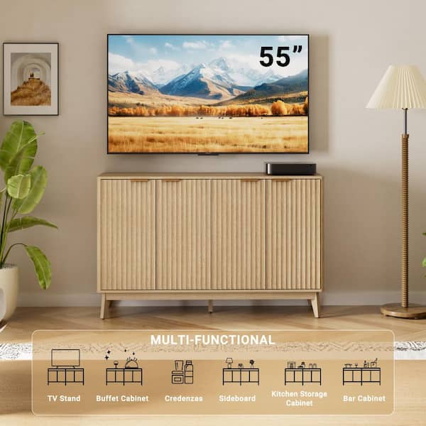 Cabinson Natural Oak 55 in. W x 15. 75 in. D x 34. 45 in. H Sideboard Buffet Cabinet and 4 Doors