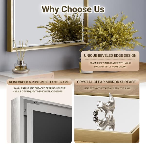 OnaBella 36 in. W x 36 in. H Rectangular Aluminum Thin Framed Wall Mount Beveled Bathroom Vanity Mirror in Gold