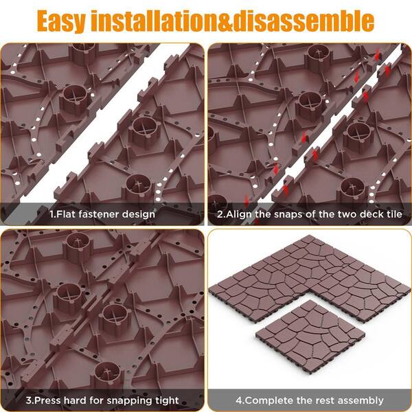 Quick Deck Tile, 1 ft. x 1 ft. All Weather Plastic Outdoor Waterproof Interlocking Deck Tile in Brown (Pack of 44)