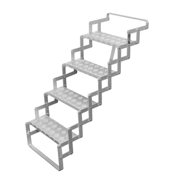 18 in. Wide Aluminum Scissor Stairs with Easy Mount Bracket for Mobile Home, RV, Camper, Shop, and Trailers-4-Step