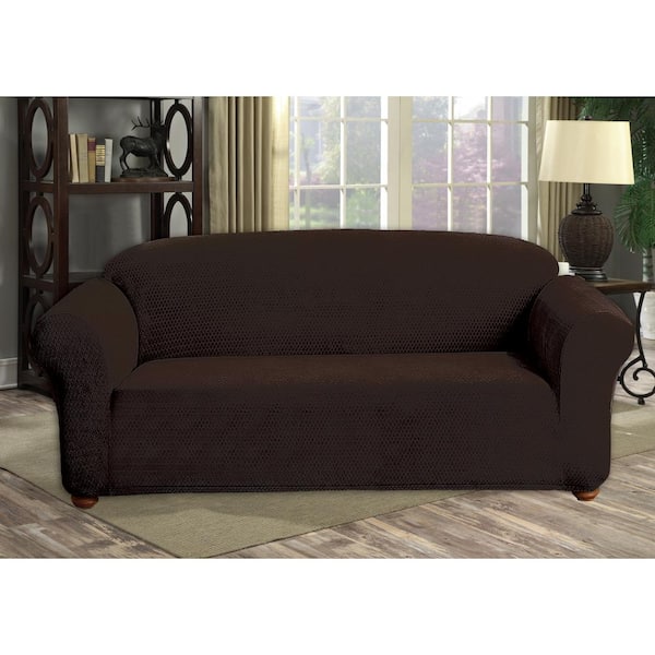 Hayden Water Resistant Chocolate Fit Polyester Fit Sofa Slip Cover