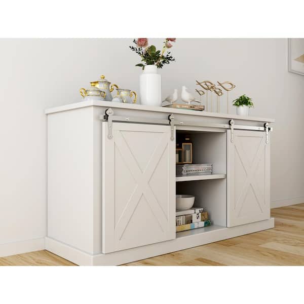 60 in. Satin Nickel Miniature Spade Sliding Barn Door Hardware for Double Furniture Wood Doors