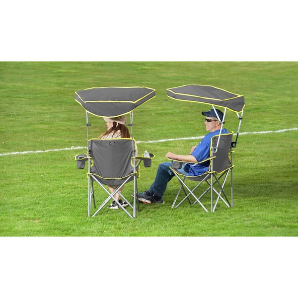 Grey Polyester Heavy Duty Extra Wide Folding Camp Chair with Tilt UV Sun Protection Canopy