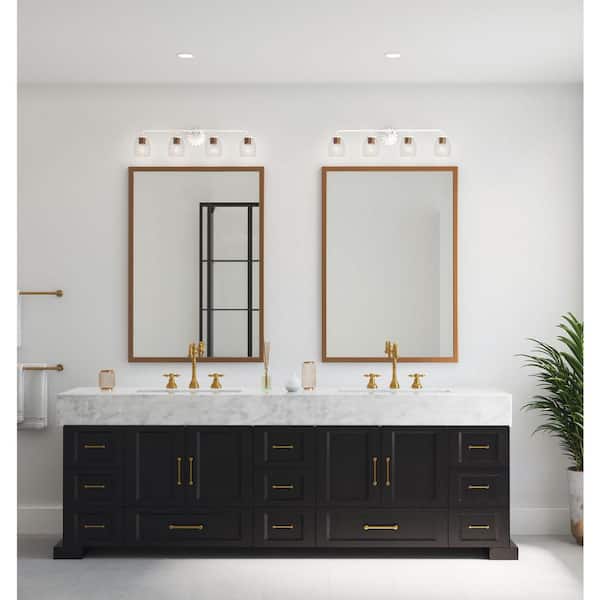 Quillan 33.62 in. 4-Light Soft Gold Vanity Light with Clear Glass Shade