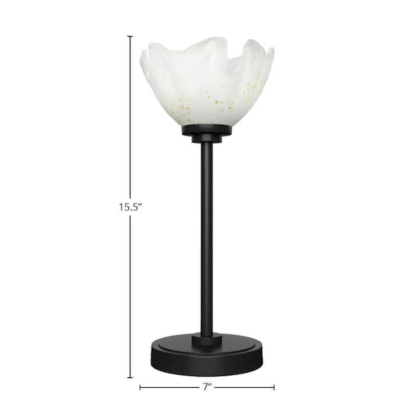 Quincy 15.5 in. Matte Black Accent Lamp with Gold Ice Glass Shade