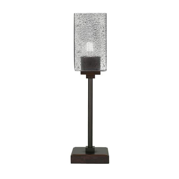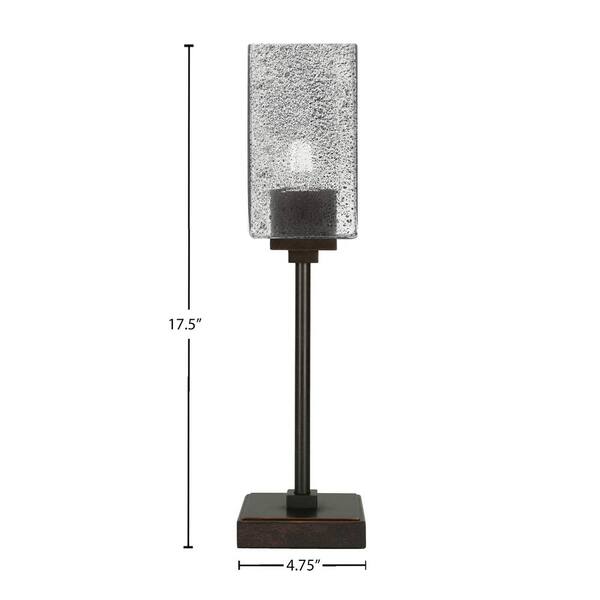 Quincy 17.75 in. Dark Granite Bedside Accent Lamp with 3.5 in. Square Smoke Bubble Glass Shade, No bulb included