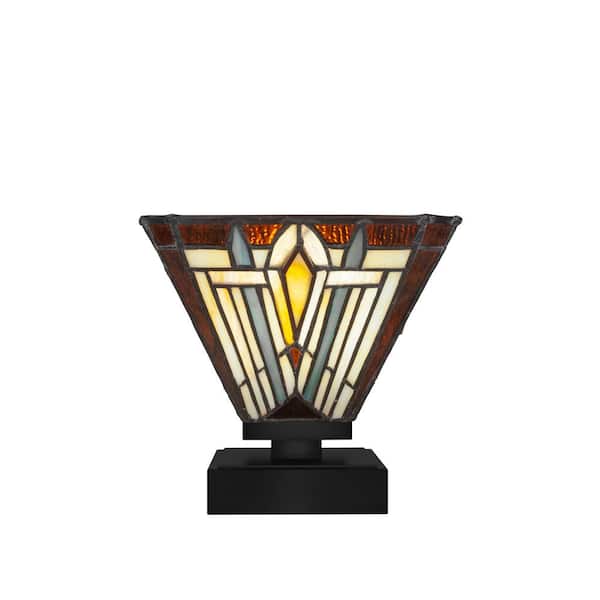 Quincy 6.75 in. Matte Black Accent Lamp with Glass Shade