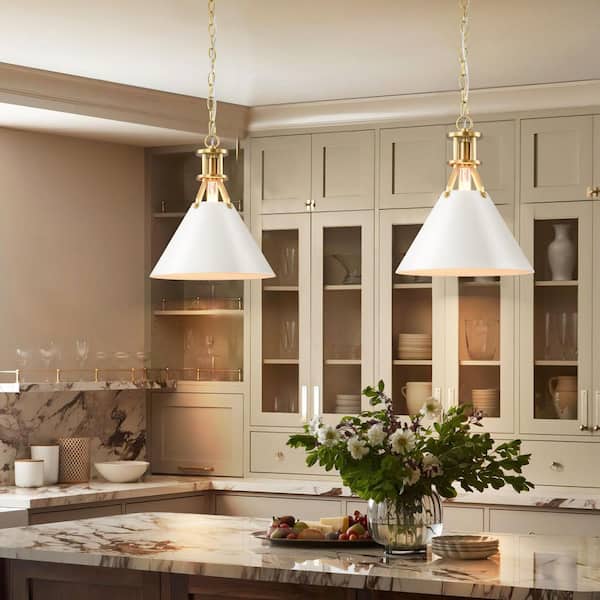 Quitterie 1-Light Modern White and Brushed Gold Cone Pendant Light