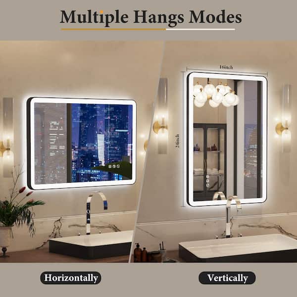 16 in. W x 24 in. H Rectangular Framed Premium Aluminum LED Wall Mounted Bathroom Vanity Mirror in Color Black