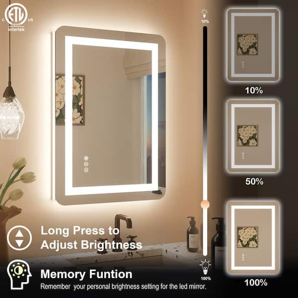 20 in. W x 28 in. H Rectangular Frameless Front and Backlit LED Lighted Wall Mounted Bathroom Vanity Mirror