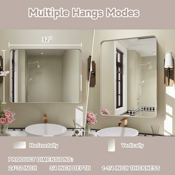 24 in. W x 32 in. H Premium Aluminum Framed Rectangular Bathroom Vanity Wall Mirror in Brushed Nichel