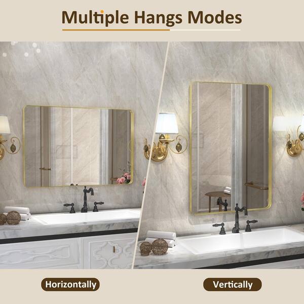 24 in. W x 32 in. H Premium Aluminum Framed Rectangular Bathroom Vanity Wall Mirror in Gold
