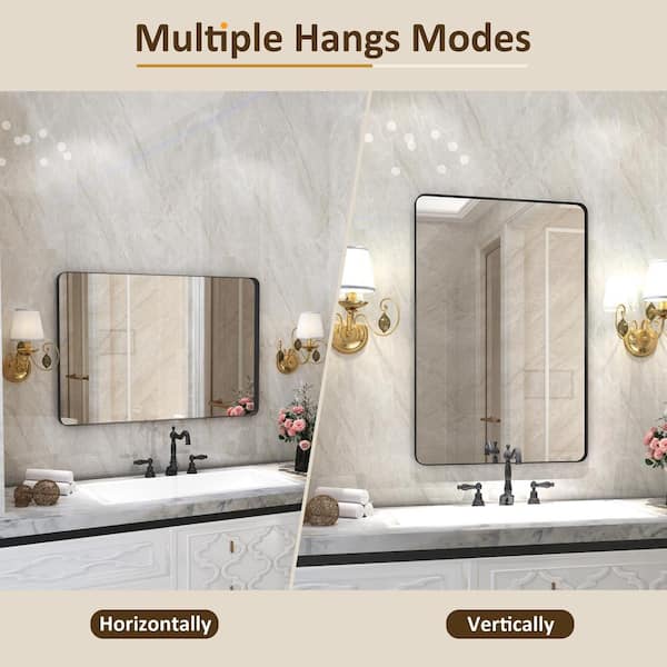 24 in. W x 32 in. H Premium Aluminum Framed Rectangular Bathroom Vanity Wall Mirror in Matte Black