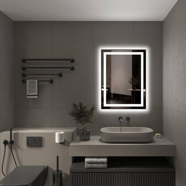 24 in. W x 32 in. H Rectangular Aluminum LED Lighted Framed Tempered Glass Bathroom Vanity Wall Mounted Mirror
