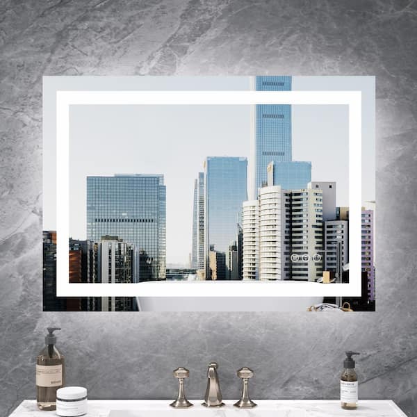 28 in. W x 36 in. H Rectangular Frameless LED Wall Mounted Bathroom Vanity Mirror