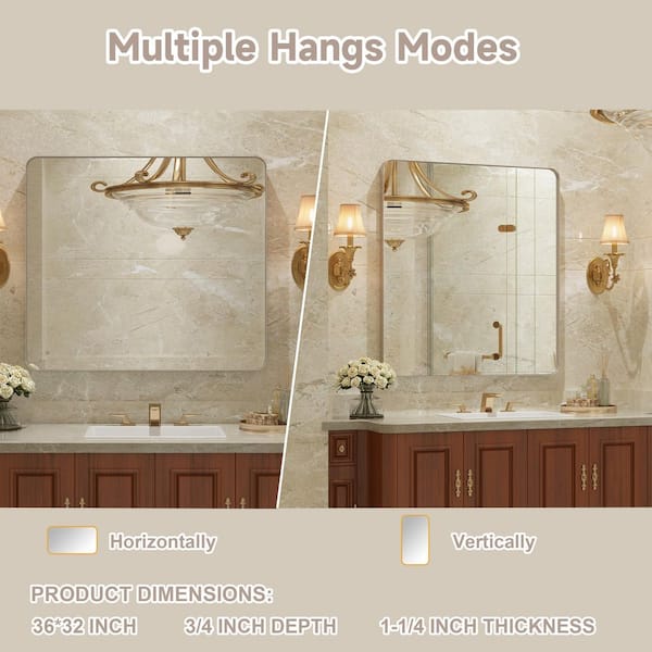 32 in. W x 36 in. H Premium Aluminum Framed Rectangular Bathroom Vanity Wall Mirror in Brushed Nichel