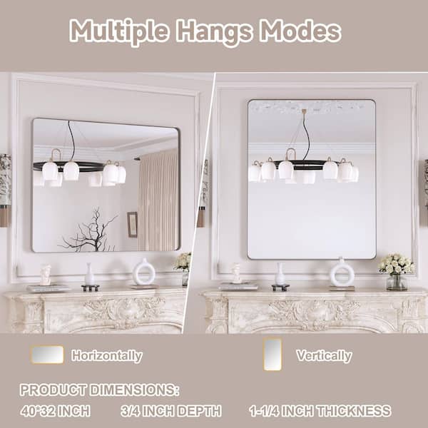 40 in. W x 32 in. H Premium Aluminum Framed Rectangular Bathroom Vanity Wall Mirror in Brushed Nichel