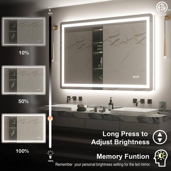 48 in. W x 32 in. H Rectangular Frameless Front and Backlit LED Lighted Wall Mounted Bathroom Vanity Mirror