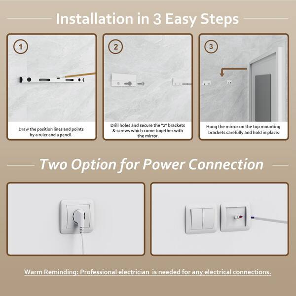 • 3-color changeable and Brightness adjustable LED mirror