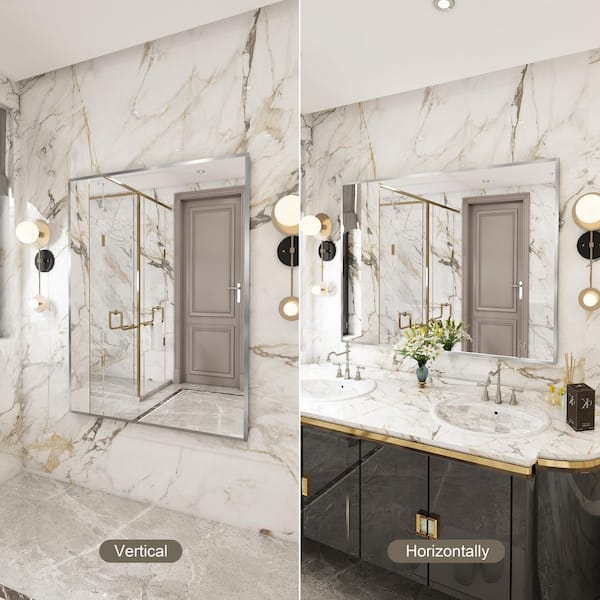 48 in. W x 36 in. H Aluminum Framed Rectangular Vanity Wall Mounted Mirror in Brushed Nichel