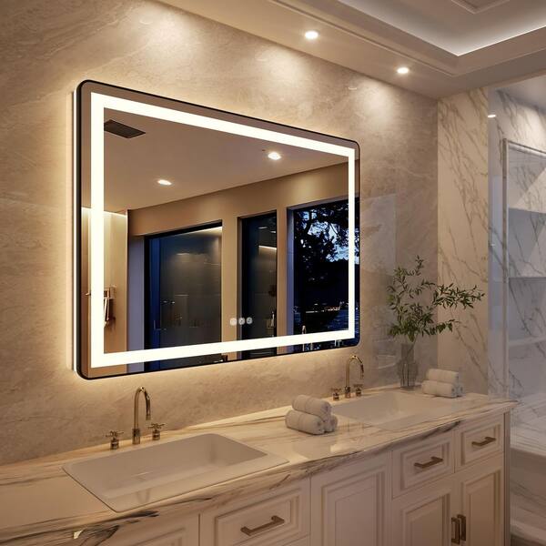 48 in. W x 36 in. H Rectangular Aluminum Micro-Arc Framed bathroom Vanity Wall Mounted LED Lighted Mirror