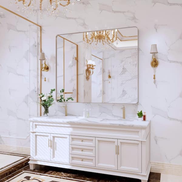 48 in. W x 40 in. H Premium Aluminum Framed Rectangular Bathroom Vanity Wall Mirror in Brushed Nichel