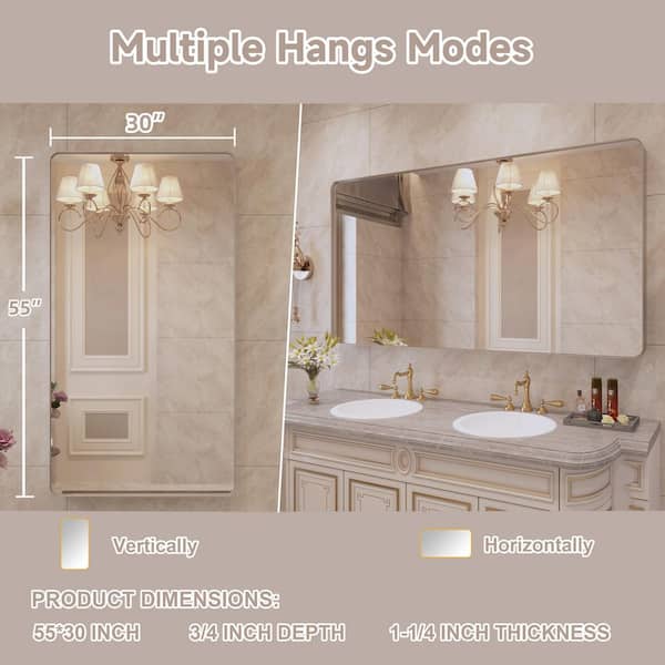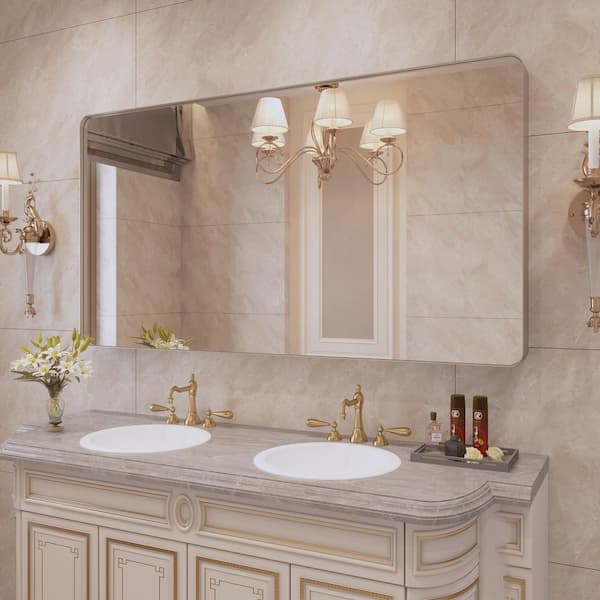 55 in. W x 30 in. H Premium Aluminum Framed Rectangular Bathroom Vanity Wall Mirror in Brushed Nichel