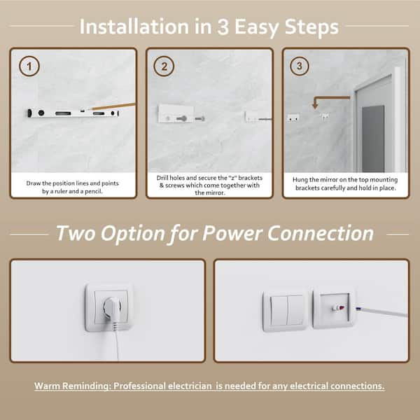 55 in. W x 30 in. H Rectangular Frameless LED Wall Mounted Bathroom Vanity Mirror
