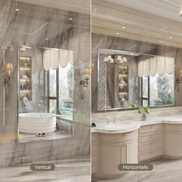 55 in. W x 36 in. H Aluminum Framed Rectangular Vanity Wall Mounted Mirror in Brushed Nichel