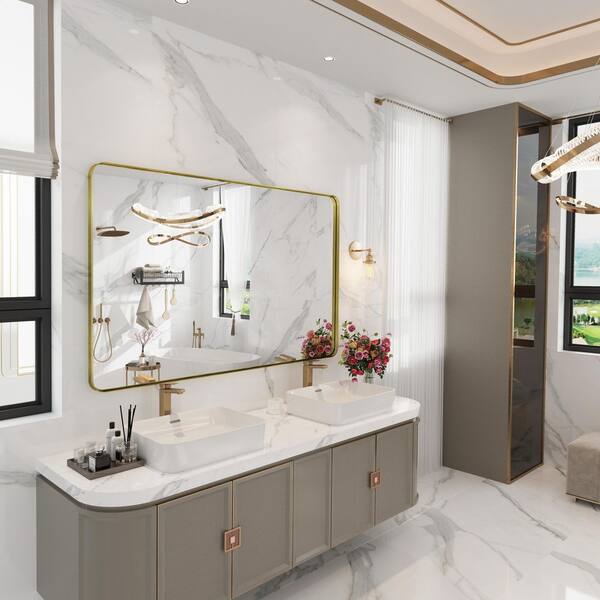 55 in. W x 36 in. H Premium Aluminum Framed Rectangular Bathroom Vanity Wall Mirror in Gold