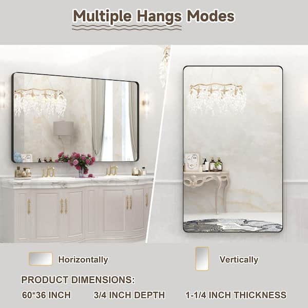 60 in. W x 36 in. H Premium Aluminum Framed Rectangular Bathroom Vanity Wall Mirror in Matte Black