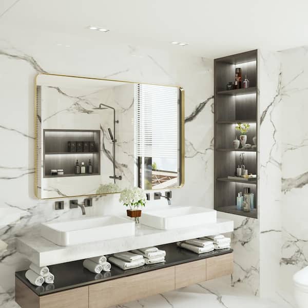 60 in. W x 40 in. H Premium Aluminum Framed Rectangular Bathroom Vanity Wall Mirror in Gold