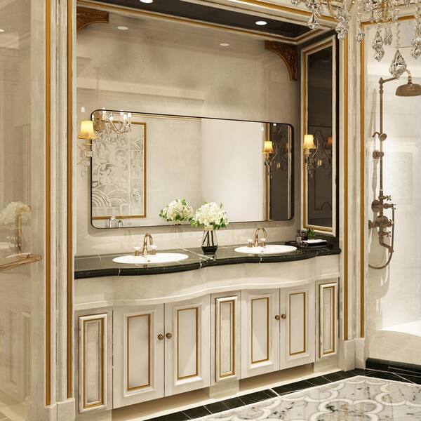 72 in. W x 36 in. H Premium Aluminum Framed Rectangular Bathroom Vanity Wall Mirror in Matte Black