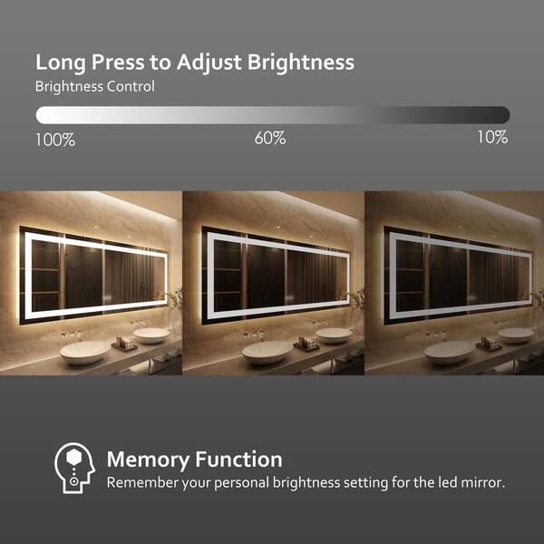 95 in. W x 36 in. H Rectangular Frameless LED Wall Mounted Bathroom Vanity Mirror