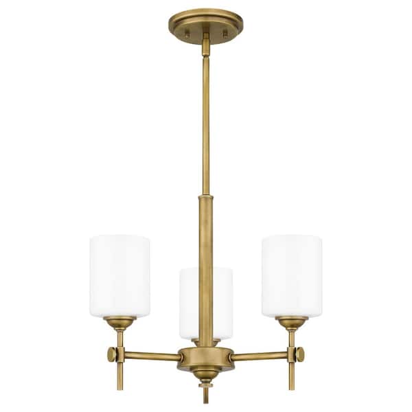 Aria 3-Light Weathered Brass Pendant with Opal Glass