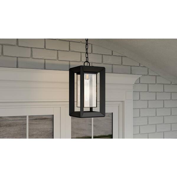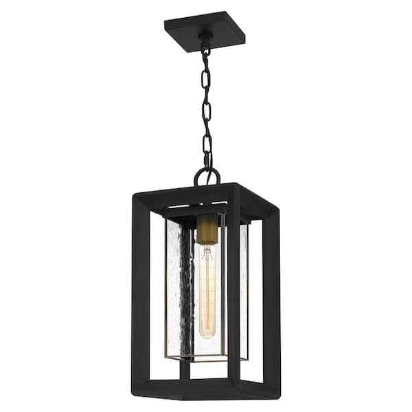 Infinger 9 in. 1-Light Earth Black Outdoor Pendant-Light with Clear Seeded Glass