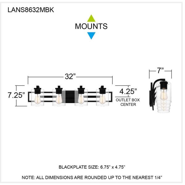 Lansdowne 32 in. 4-Light Matte Black Vanity Light