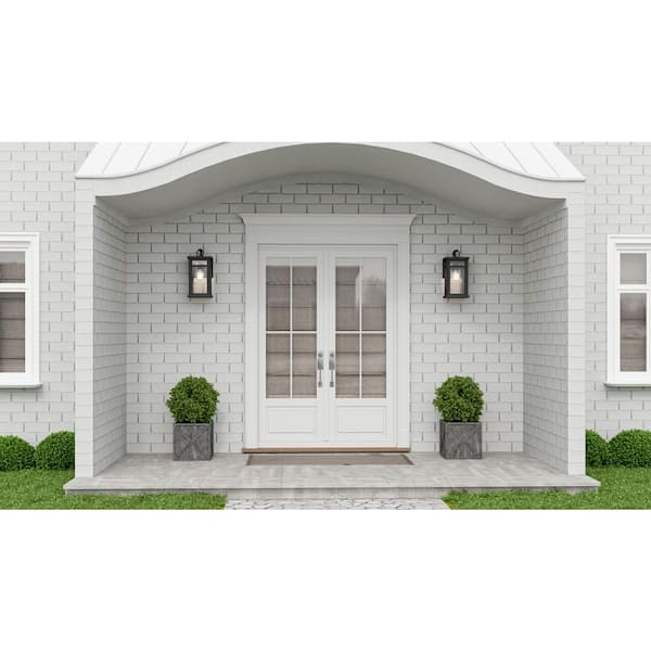 Moira 7.75 in. 1-Light Earth Black Outdoor Wall Lantern Sconce with Clear Water Glass