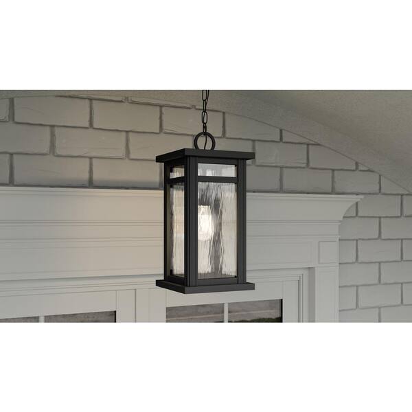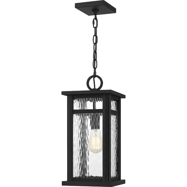 Moira 8.25 in. 1-Light Earth Black Outdoor Pendant-Light with Clear Water Glass