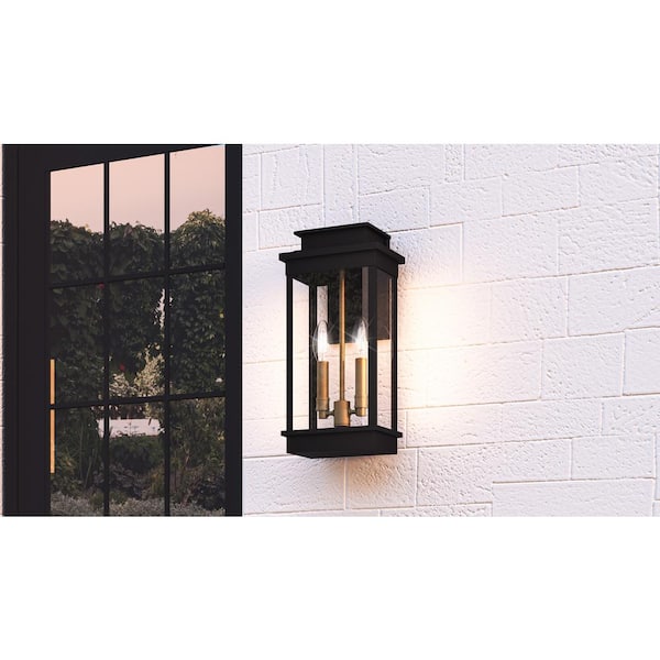 • Modern matte black outdoor wall lantern with clear glass panels