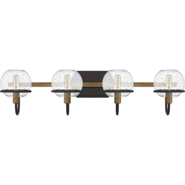Phoenix 30.75 in. 4-Light Western Bronze Vanity Light with Clear Seeded Glass