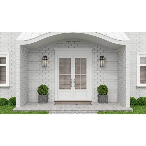 Randall 9 in. 1-Light Mottled Black Outdoor Wall Lantern Sconce with Clear Seeded Glass