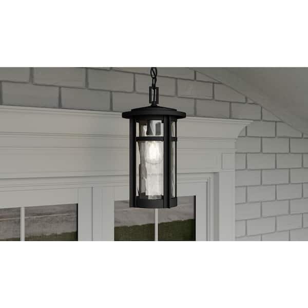 Uma 8 in. 1-Light Matte Black Outdoor Pendant-Light with Clear Water Glass