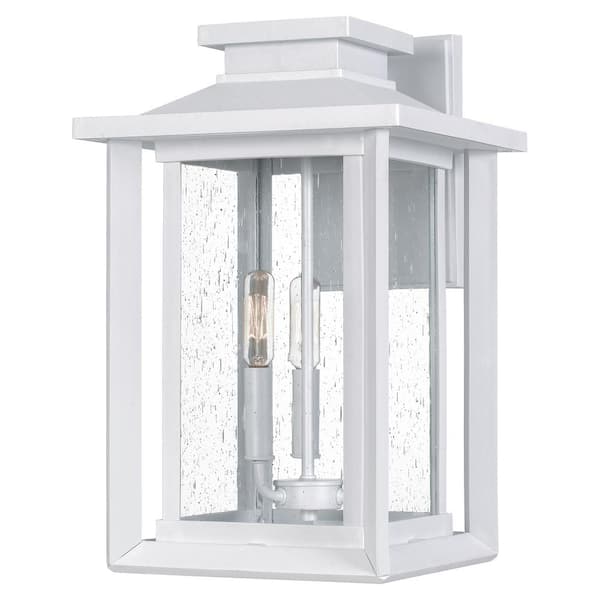 • White lustre outdoor wall lantern with clear water glass panels