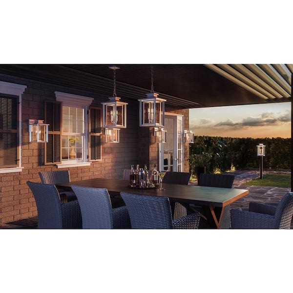 • Modern farmhouse wall light complements a front porch or patio