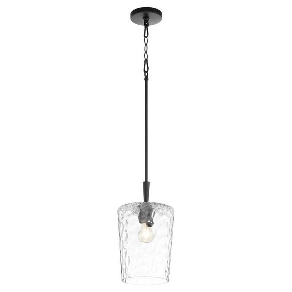 GOODWIN 8 in. 1-Light 100-Watt Pendant Light with Clear Hammered Glass Matte Black