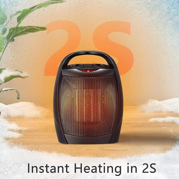 1,500-Watt Compact Indoor Small Ceramic Electric Heater with Adjustable Thermostat and Carry Handle, Black