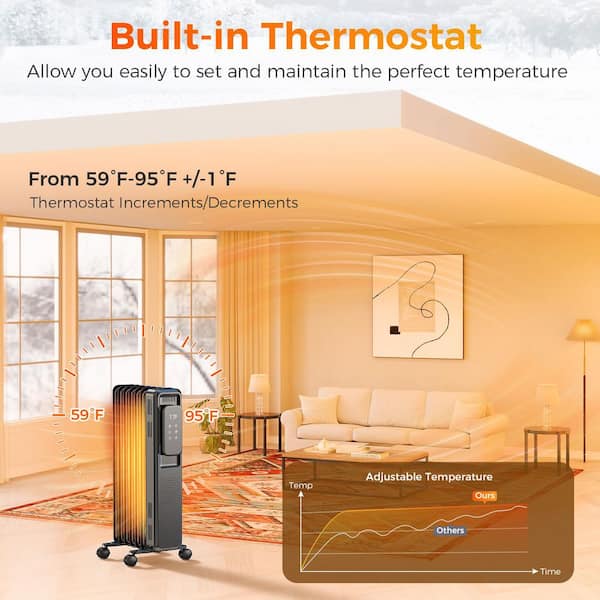 1500W Portable Electric Oil Heater with LCD Display and Anti-Tip Protection in Black
